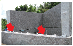 石接合部分に、ステンレスのカスガイを使用。さらに、石材協力ボンドで埋めこみ、頑丈で耐久性にも優れています。